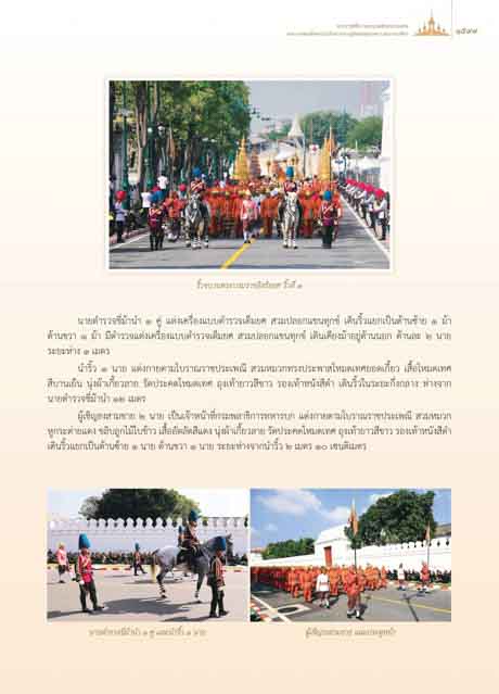 ผูเชิญธงสามชาย ๒ นาย เปนเจาหนาที่กรมพลาธิการทหารบก แตงกายตามโบราณราชประเพณี สวมหมวก