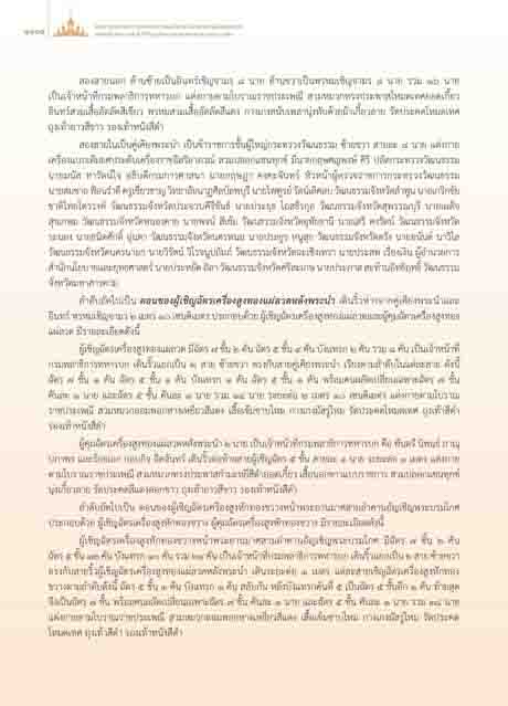 ผูเชิญฉัตรเครื่องสูงทองแผลวด มีฉัตร ๗ ชั้น ๒ คัน ฉัตร ๕ ชั้น ๔ คัน บังแทรก ๒ คัน รวม ๘ คัน เปนเจาหนาที่