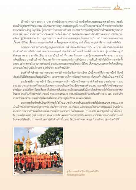 ประดับเครื่องราชอิสริยาภรณ สวมปลอกแขนทุกข ประจําดานหนาและดานหลังขางละ ๒ นาย ผูถวายบังพระสูรย