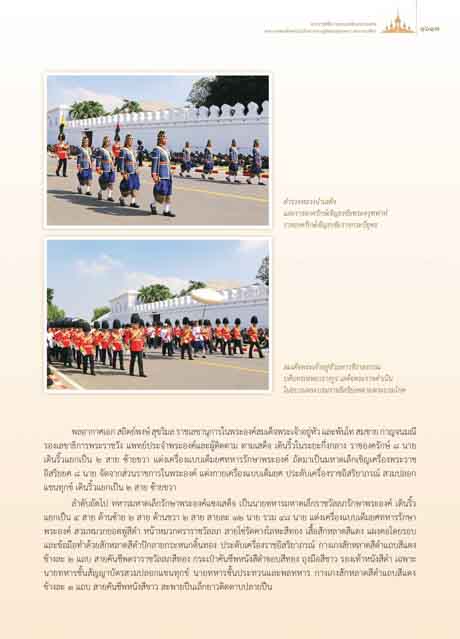 แยกเปน ๔ สาย ดานซาย ๒ สาย ดานขวา ๒ สาย สายละ ๑๒ นาย รวม ๔๘ นาย แตงเครื่องแบบเต็มยศทหารรักษา