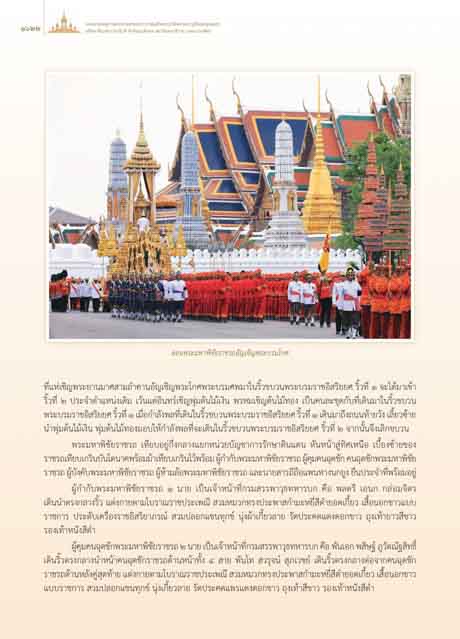 ราชรถดานหลังคูสุดทาย แตงกายตามโบราณราชประเพณี สวมหมวกทรงประพาสกํามะหยี่สีดํายอดเกี้ยว เสื้อนอกขาว