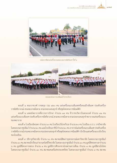 ในพระบรมราชูปถัมภ จํานวน ๒๐ คน และโรงเรียนราชินี จํานวน ๒๐ คน อาจารยแตงเครื่องแบบเต็มยศ ประดับเครื่อง