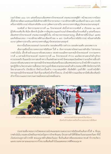 รวมกําลังพล ๑๖๖ นาย แตงเครื่องแบบเต็มยศทหารรักษาพระองค สวมหมวกยอดพูสีดํา หนาหมวกตราราชวัลลภ