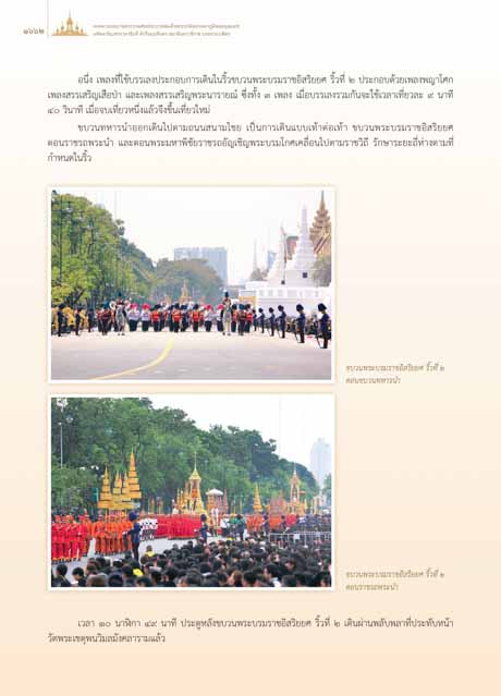 อนึ่ง เพลงที่ใชบรรเลงประกอบการเดินในริ้วขบวนพระบรมราชอิสริยยศ ริ้วที่ ๒ ประกอบดวยเพลงพญาโศก