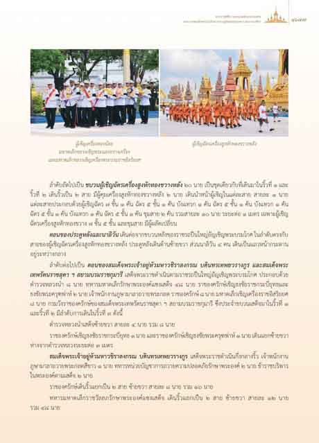 ภูษามาลาถวายพระกลดสีขาว ๑ นาย ทหารหนวยบัญชาการถวายความปลอดภัยรักษาพระองค ๒ นาย ขาราชบริพาร