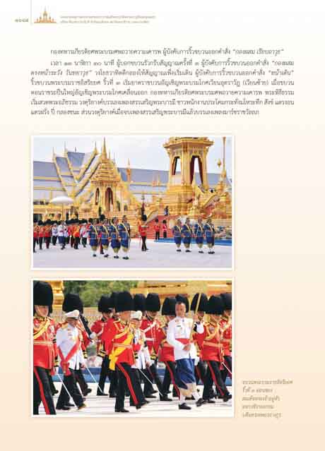 กองทหารเกียรติยศพระบรมศพถวายความเคารพ ผูบังคับการริ้วขบวนออกคําสั่ง “กองผสม เรียบอาวุธ”