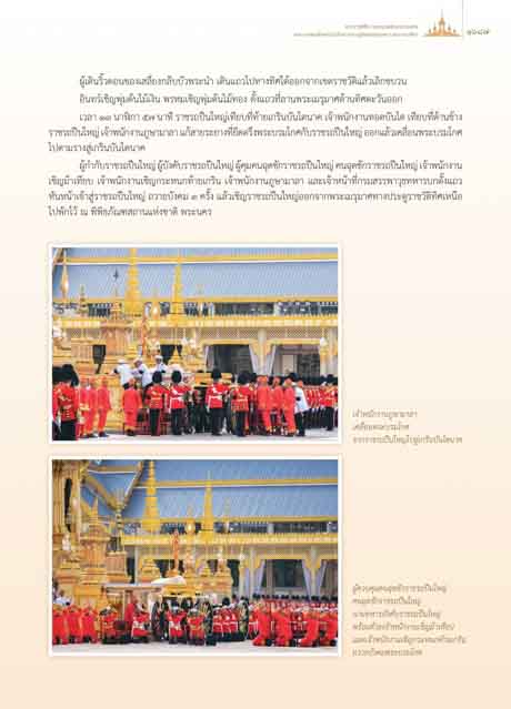 หันหนาเขาสูราชรถปนใหญ ถวายบังคม ๓ ครั้ง แลวเชิญราชรถปนใหญออกจากพระเมรุมาศทางประตูราชวัติทิศเหนือ