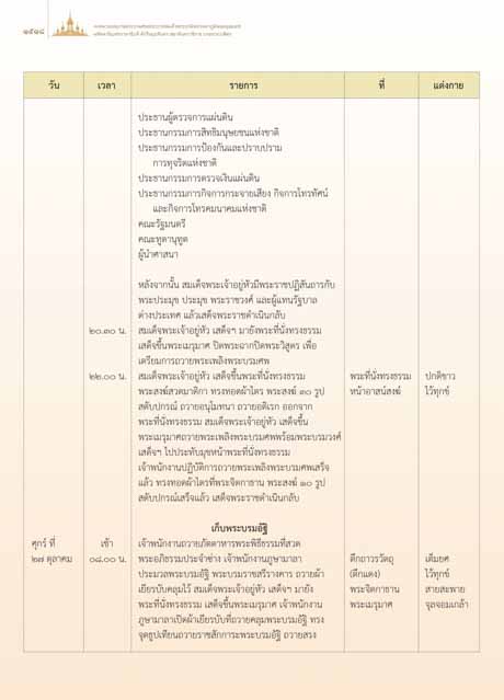๒๗ ตุลาคม ๐๘.๐๐ น. พระอภิธรรมประจําซาง เจาพนักงานภูษามาลา ตึกถาวรวัตถุ เต็มยศ