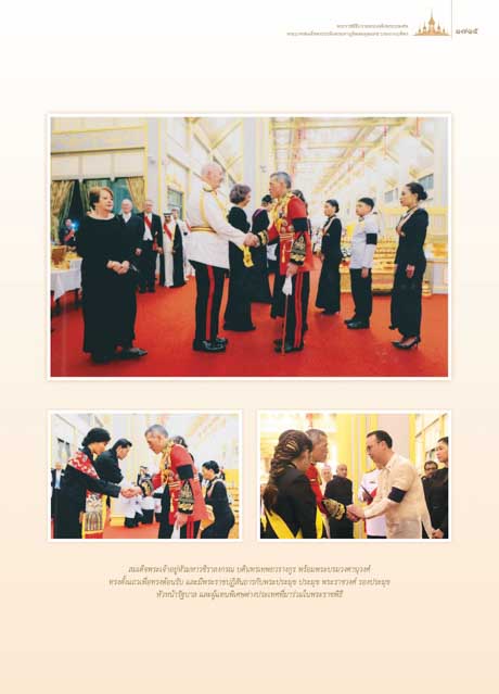 ทรงตั้งแถวเพื่อทรงตอนรับ และมีพระราชปฏิสันถารกับพระประมุข ประมุข พระราชวงศ รองประมุข