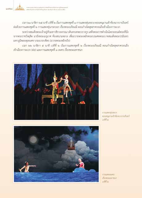 เวลา ๒๑ นาฬกา ๒๕ นาที เวทีที่ ๒ เริ่มการแสดงชุดที่ ๑ การแสดงหุนหลวง ตอนหนุมานเขาหองนางวานรินทร