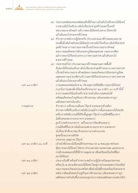 ถือดอกไมจันทนระดับอก เดินไปยืนประจําจุดที่กําหนด ถวายความเคารพ
