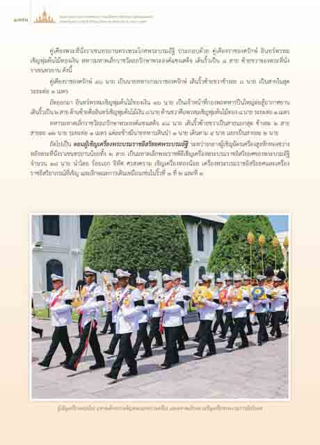 เชิญพุมตนไมทองเงิน ทหารมหาดเล็กราชวัลลภรักษาพระองคแซงเสด็จ เดินริ้วเปน ๘ สาย ซายขวาของพระที่นั่ง