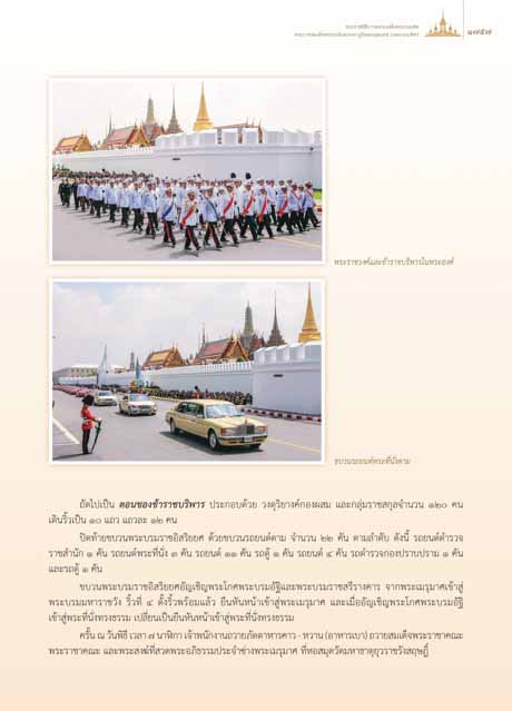 ถัดไปเปน ตอนของขาราชบริพาร ประกอบดวย วงดุริยางคกองผสม และกลุมราชสกุลจํานวน ๑๒๐ คน