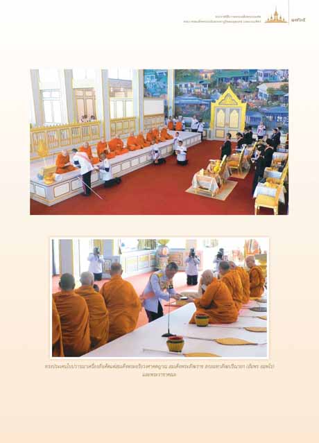 พระราชพิธีถวายพระเพลิงพระบรมศพ ๑๗๖๕ พระบาทสมเด็จพระปรมินทรมหาภูมิพลอดุลยเดช บรมนาถบพิตร ทรงประเคนใบปวารณาเครื่องสังเค็ดแดสมเด็จพระอริยวงศาคตญาณ สมเด็จพระสังฆราช สกลมหาสังฆปริณายก (อัมพร อมฺพโร) และพระราชาคณะ 1765