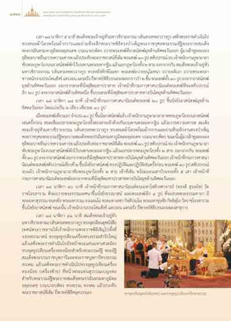 ธุลีพระบาทยืนถวายความเคารพ แลวประทับพระราชอาสนที่เดิม พระสงฆ ๑๐ รูป สดับปกรณ จบ เจาพนักงานภูษามาลา