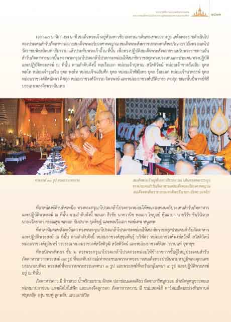 ที่อาสนสงฆดานทิศเหนือ ทรงพระกรุณาโปรดเกลาโปรดกระหมอมใหคณะองคมนตรีประเคนสํารับภัตตาหาร