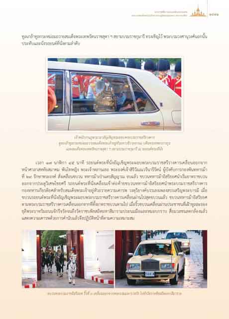 เวลา ๑๗ นาฬกา ๔๕ นาที รถยนตพระที่นั่งอัญเชิญพระผอบพระบรมราชสรีรางคารเคลื่อนออกจาก