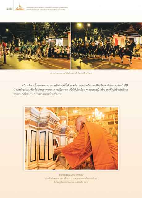 นําแผนหินออนมาปดที่ชองบรรจุพระบรมราชสรีรางคาร ผนึกใหเรียบรอย พระพรหมมุนี (สุชิน อคฺคชิโน) นําแผนอักษร