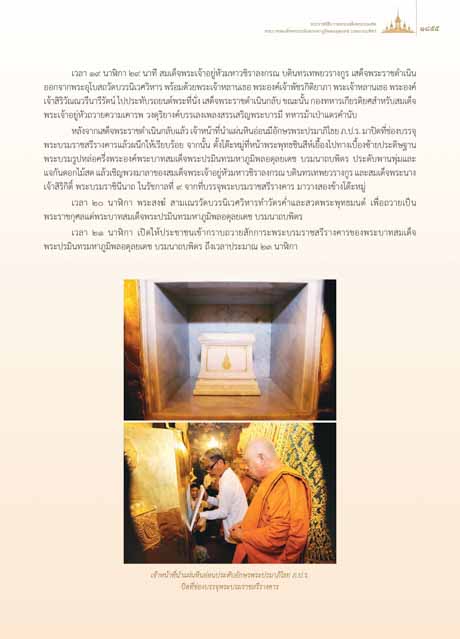 หลังจากเสด็จพระราชดําเนินกลับแลว เจาหนาที่นําแผนหินออนมีอักษรพระปรมาภิไธย ภ.ป.ร. มาปดที่ชองบรรจุ