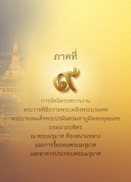 ภาคที่ การจัดนิทรรศการงาน พระราชพิธีถวายพระเพลิงพระบรมศพ พระบาทสมเด็จพระปรมินทรมหาภูมิพลอดุลยเดช บรมนาถบพิตร ณ พระเมรุมาศ ทองสนามหลวง และการรื้อถอนพระเมรุมาศ และอาคารประกอบพระเมรุมาศ 1857