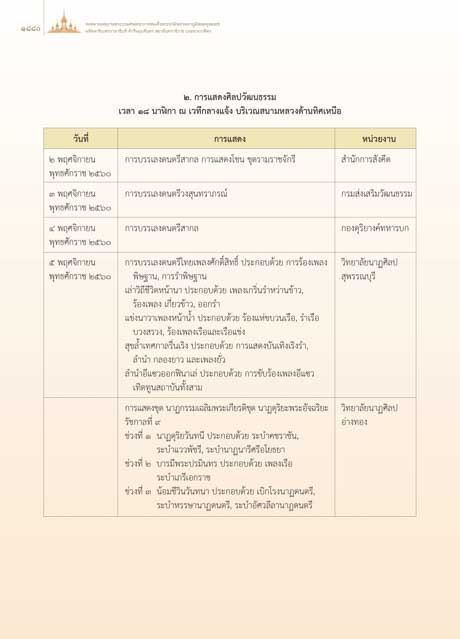 ๕ พฤศจิกายน การบรรเลงดนตรีไทยเพลงศักดิ์สิทธิ์ ประกอบดวย การรองเพลง วิทยาลัยนาฏศิลป