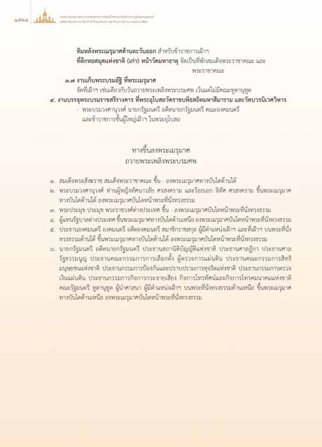 ๔. ผูแทนรัฐบาลตางประเทศ ขึ้นพระเมรุมาศทางบันไดดานเหนือ ลงพระเมรุมาศบันไดหนาพระที่นั่งทรงธรรม