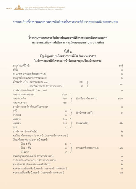 รายละเอียดริ้วขบวนพระบรมราชอิสริยยศในพระราชพิธีถวายพระเพลิงพระบรมศพ