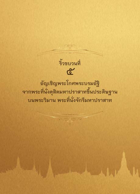 ริ้วขบวนที่ ๕ อัญเชิญพระโกศพระบรมอัฐิ จากพระที่นั่งดุสิตมหาปราสาทขึ้นประดิษฐาน บนพระวิมาน พระที่นั่งจักรีมหาปราสาท 1955