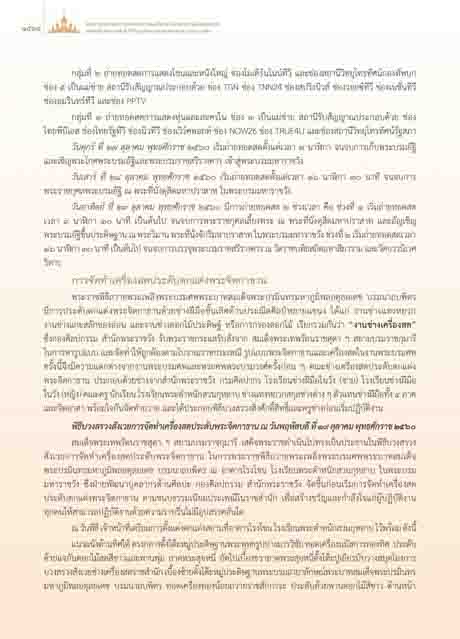 วันเสาร ที่ ๒๘ ตุลาคม พุทธศักราช ๒๕๖๐ เริ่มถายทอดสดตั้งแตเวลา ๑๖ นาฬกา ๓๐ นาที จนจบการ