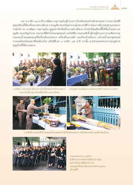 ราชสํานัก จบ นางพัฒนา เกตุกาญจโน จุดธูปหางปกที่เครื่องบวงสรวงสังเวย เจาหนาที่จุดเทียนขี้ผึ้งที่ขันนํ้ามนต นาย