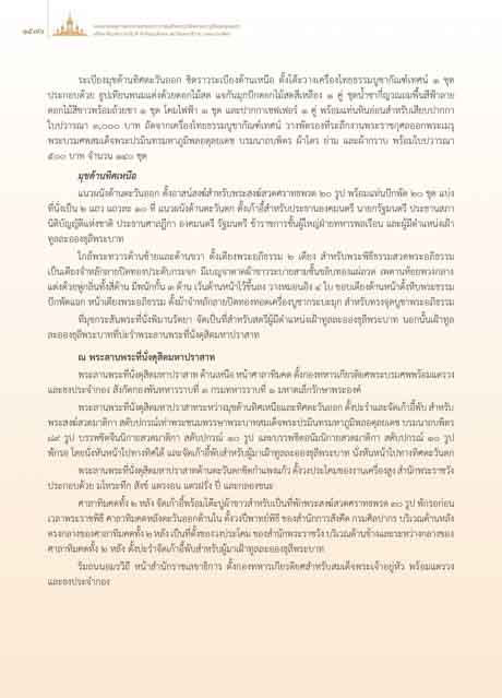 แนวผนังดานตะวันออก ตั้งอาสนสงฆสําหรับพระสงฆสวดศราทธพรต ๒๐ รูป พรอมแทนปกพัด ๒๐ ชุด แบง