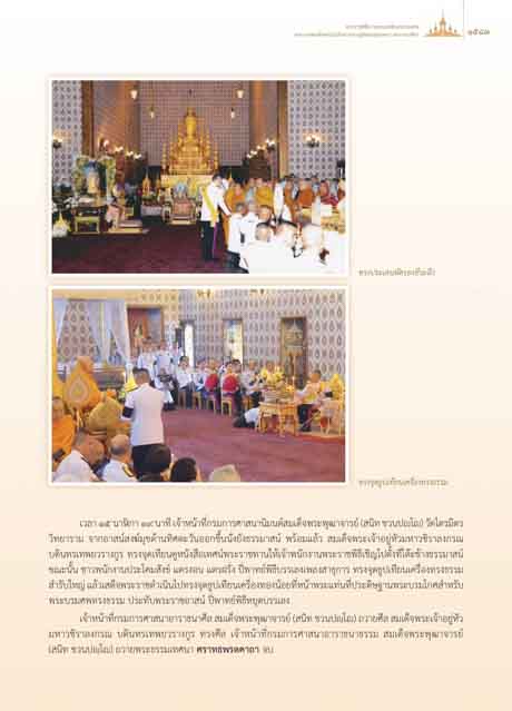 วิทยาราม จากอาสนสงฆมุขดานทิศตะวันออกขึ้นนั่งยังธรรมาสน พรอมแลว สมเด็จพระเจาอยูหัวมหาวชิราลงกรณ