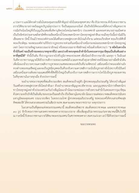 ๔ ประการ และไดทรงดํารงมั่นในพระคุณธรรมที่สําคัญอยางยิ่งในพระพุทธศาสนา คือ อัปมาทธรรม ดังรับพระราชทาน